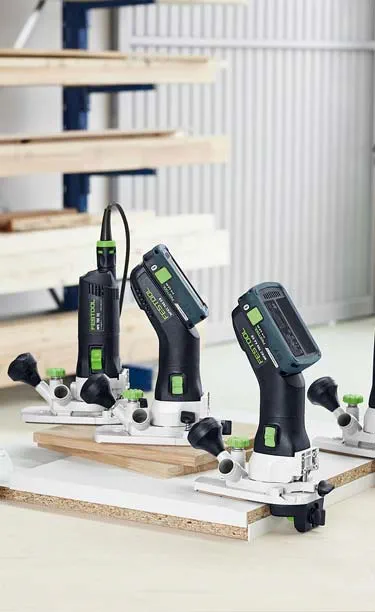 Festool Kantenfräsen bieten dir mehr Flexibilität und Wendigkeit für reibungslose Arbeitsabläufe. Zum Beispiel beim Abrunden und Anfasen von Massivholz oder Kunststoffkanten, beim Bündigfräsen von überstehenden Schichtstoffplatten oder Kantenumleimern. Durch die schlanke Bauweise und die optimale Schwerpunktlage lassen sie sich sicher führen, ohne abzukippen. Dank präziser Frästiefeneinstellung wird Nacharbeit merklich reduziert. Damit bist du für jede Anwendung im Kantenbereich gerüstet.