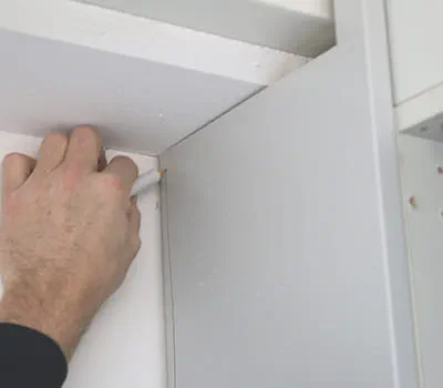 Le résultat : une baguette d'ajustement parfaitement encastrée. Avec la technique adaptée, il n'est donc pas très compliqué d’adapter une baguette d'ajustement et l'armoire encastrée obtient une finition murale nette.