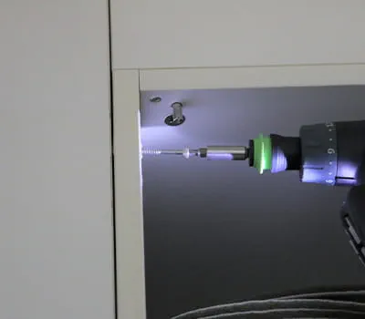 Dans le cas d'une baguette d'ajustement en retrait, celle-ci peut être facilement vissée de l'intérieur à travers le côté de l'armoire. Comme solution alternative, des clips ou baguettes de montage spéciaux peuvent être utilisés.