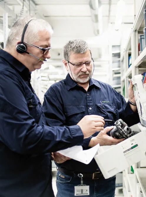 - Unsere Mitarbeiter sind speziell auf die Reparatur der Festool Produkte geschult, so dass jeder Handgriff sitzt und Sie Ihr Werkzeug schnellstmöglich wieder zurückbekommen.