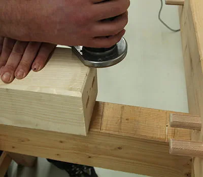 Gegebenenfalls die Fräsungen an weiteren Holzpfosten wiederholen.